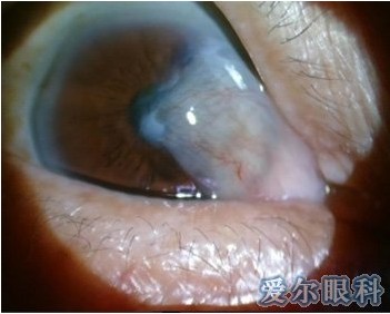 翼状胬肉为球结膜及纤维血管组织呈翼状侵入角膜浅层,是一种结膜组织的增殖变性引起的病变。一般认为,长期暴露于烟尘、风沙、日光下,受冷、热刺激,结膜结缔组织变性增生,肥厚的球结膜及结膜下组织由球结膜向角膜表面侵袭,其形状酷似昆虫的翅膀而得名。